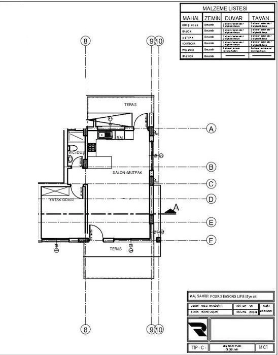 Intelligente Zonierung: Der Grundriss weist einen klar abgegrenzten Wohn-/Küchenbereich (Salon + Mutfak) und ein vollständig isoliertes Schlafzimmer (Yatak Odasi) auf, so dass die Privatsphäre auch bei der Bewirtung von Gästen gewährleistet ist.