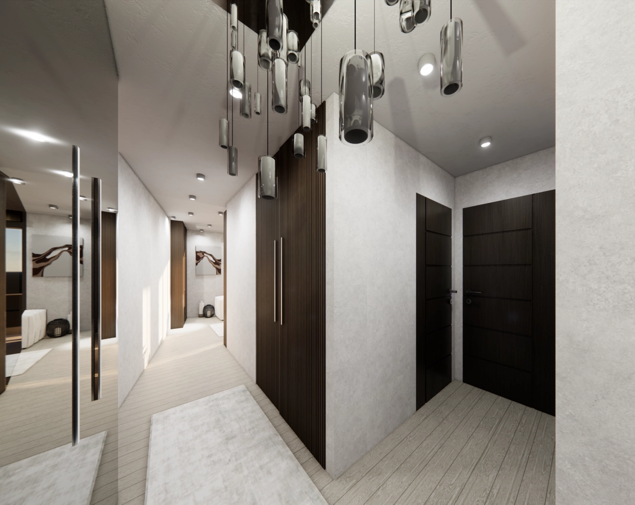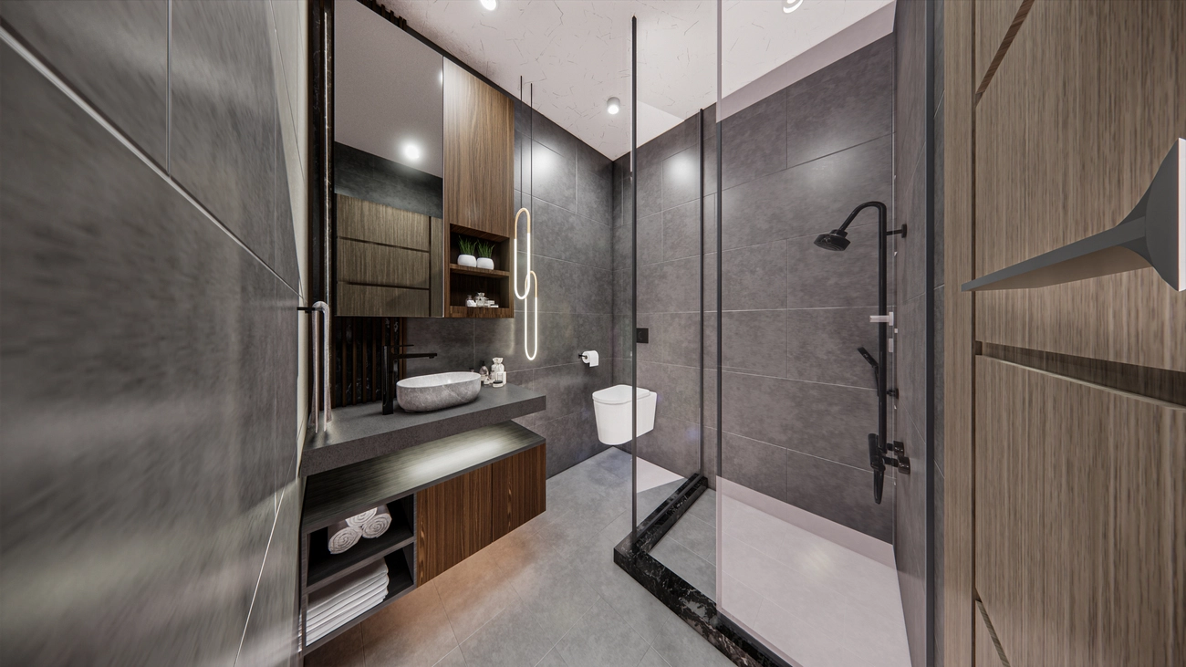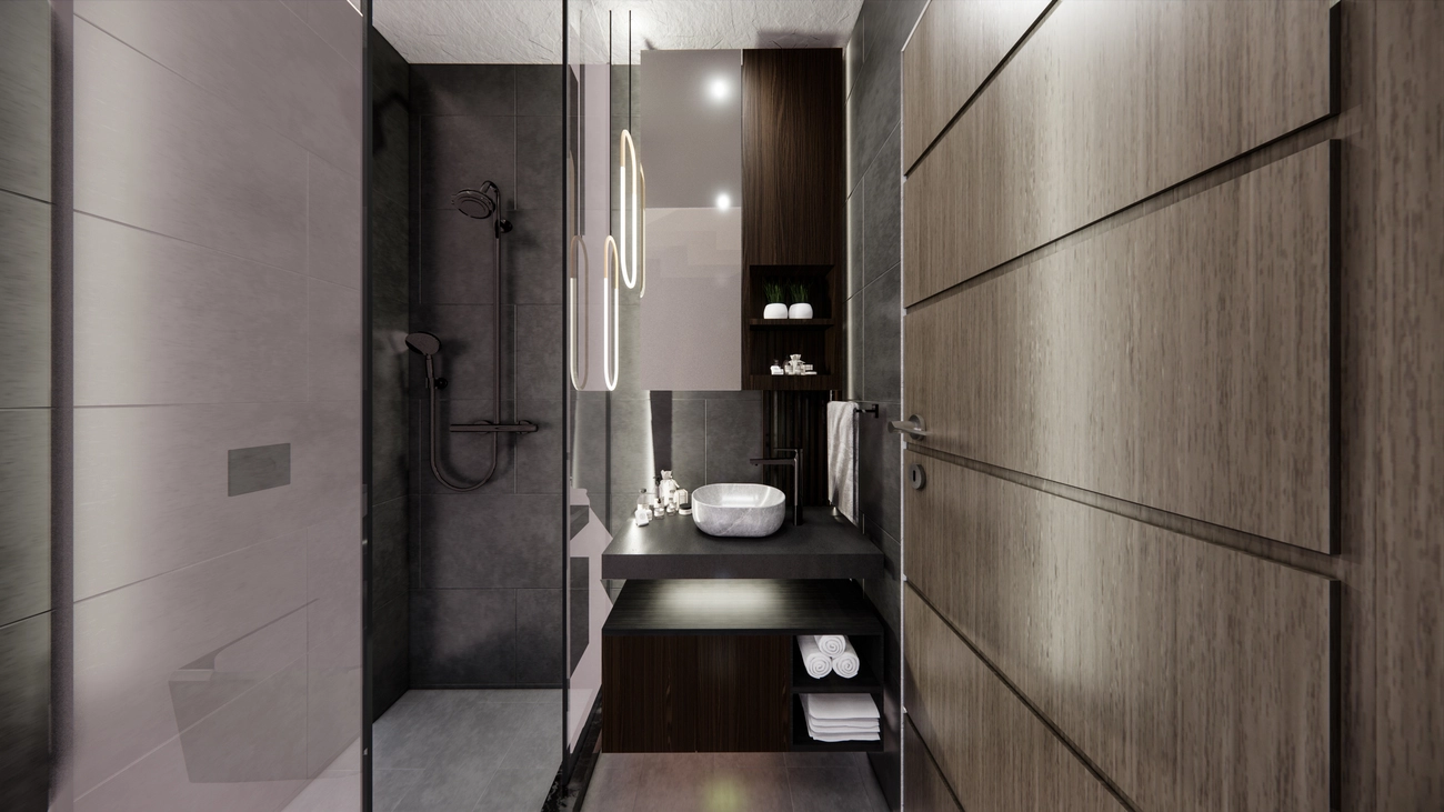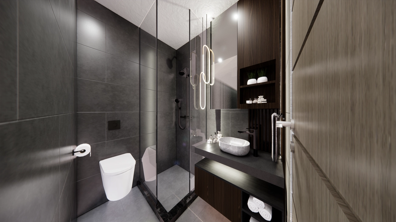 • Private Schlafzimmer: Der Grundriss sieht zwei isolierte Schlafzimmer vor, die sich an gegenüberliegenden Enden befinden oder durch den Wohnbereich getrennt sind, so dass absolute Privatsphäre gewährleistet ist. Das Hauptschlafzimmer verfügt über ein privates Badezimmer, ein äußerst wünschenswertes Merkmal für hochwertige Küstenimmobilien.