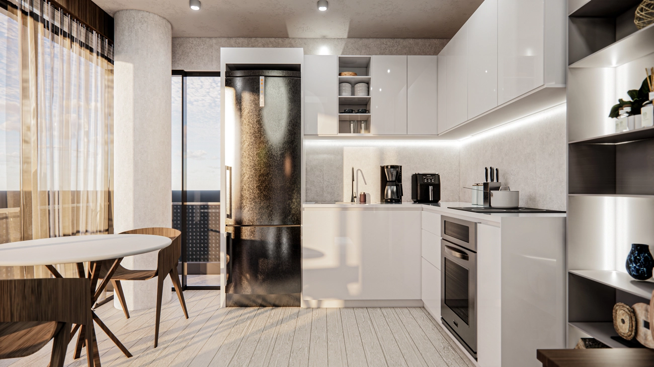 Diese "2+1"-Wohnung wurde meisterhaft entworfen, um ein Maximum an Privatsphäre und Funktionalität für einen modernen Lebensstil zu gewährleisten: