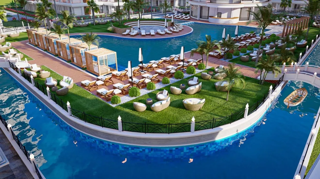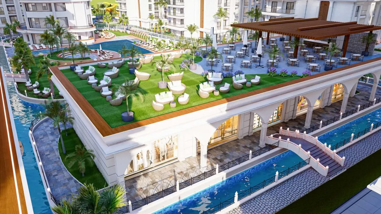 "Venedig" ist ein innovativer Apartmentkomplex neuen Formats in der erstklassigen Ferienzone von İskele, Nordzypern, im Herzen der sich entwickelnden Küstenlinie von Long Beach. Dieses begehrte Wohn- und Investitionsprojekt zeichnet sich durch ein einzigartiges Merkmal aus: einen 400 Meter langen Kanal, der an seinen italienischen Namensvetter erinnert und auf dem die Bewohner Gondelfahrten unternehmen können. Der gesamte Komplex besteht aus neun Gebäuden, die sich durch einen einzigartigen architektonischen Stil auszeichnen. Die gesamte Anlage ist auf eine lebendige touristische und alltägliche Infrastruktur ausgerichtet, die durch den atmosphärischen Charme der venezianischen Wasserstraßen inspiriert ist.