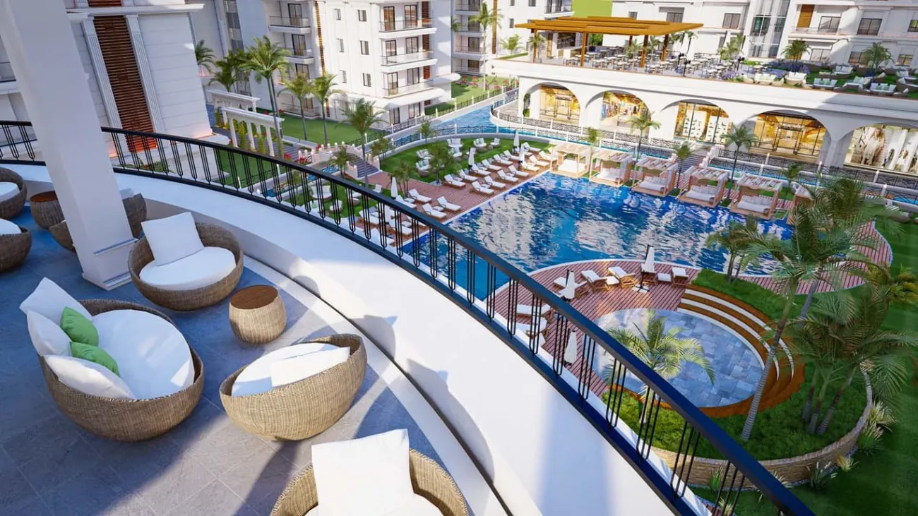 Die Anlage bietet eine Vielzahl von komplett ausgestatteten Wohnungen, darunter Studios (42 m²), Ein-Zimmer-Wohnungen (ab 60 m²), Zwei-Zimmer-Wohnungen (ab 71 m²) und herrliche Penthäuser mit Panoramablick. Jede Wohnung ist mit einer TV-Nische, raumhohen Einbauschränken und einer kompletten Küchenzeile ausgestattet, während die Klimaanlagen und Heizkessel diskret in einer eigenen Balkonnische untergebracht sind, um eine Mischung aus ästhetischer Eleganz und moderner Funktionalität zu gewährleisten.