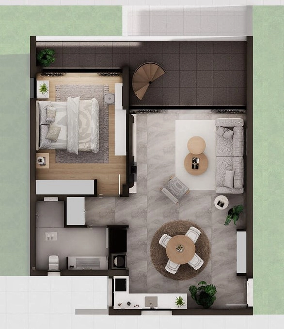 Couples & Solo Residents: The generous proportions of the 1-bedroom layout provide a level of comfort and “breathing room” rarely found in standard apartments, making it an ideal permanent residence or a high-end holiday home.