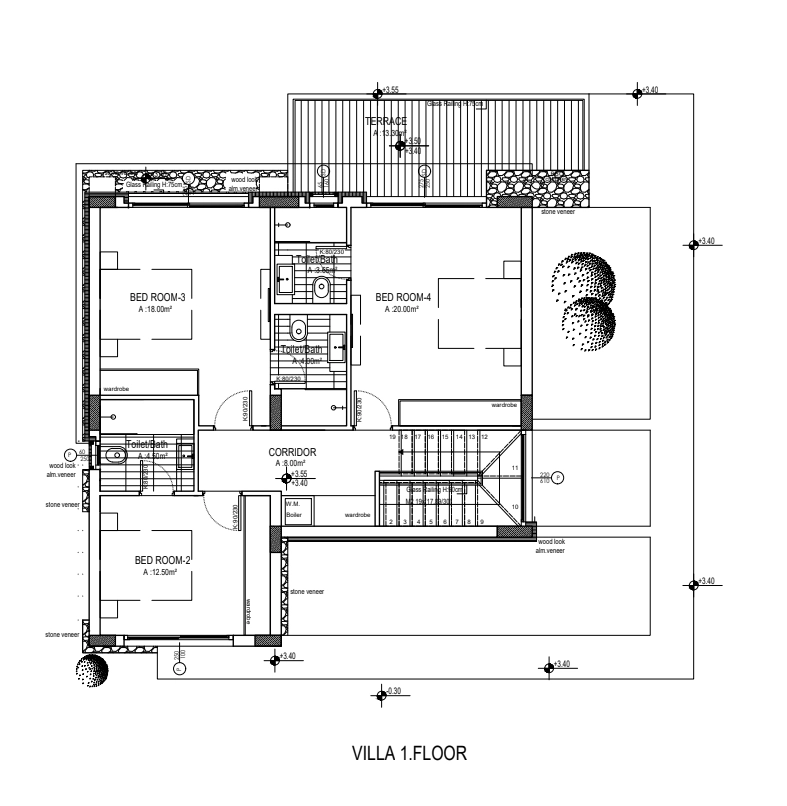 - Three additional bedrooms: Bedroom-2 (12.50 sqm), Bedroom-3 (18.00 sqm), and the grand Bedroom-4 (20.00 sqm).