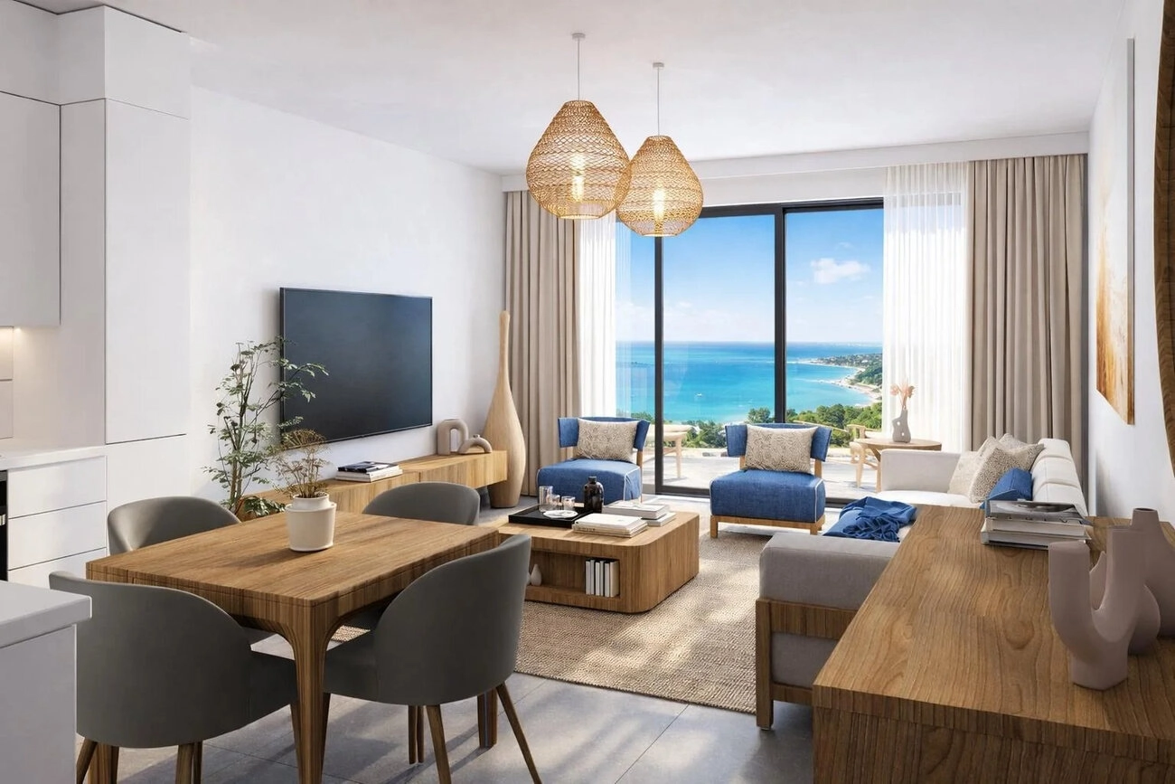 Życie na zewnątrz: Taras o powierzchni 12 m² rozszerza przestrzeń mieszkalną na zewnątrz, oferując idealne miejsce na poranną kawę lub drinki o zachodzie słońca, delektując się cypryjską bryzą.