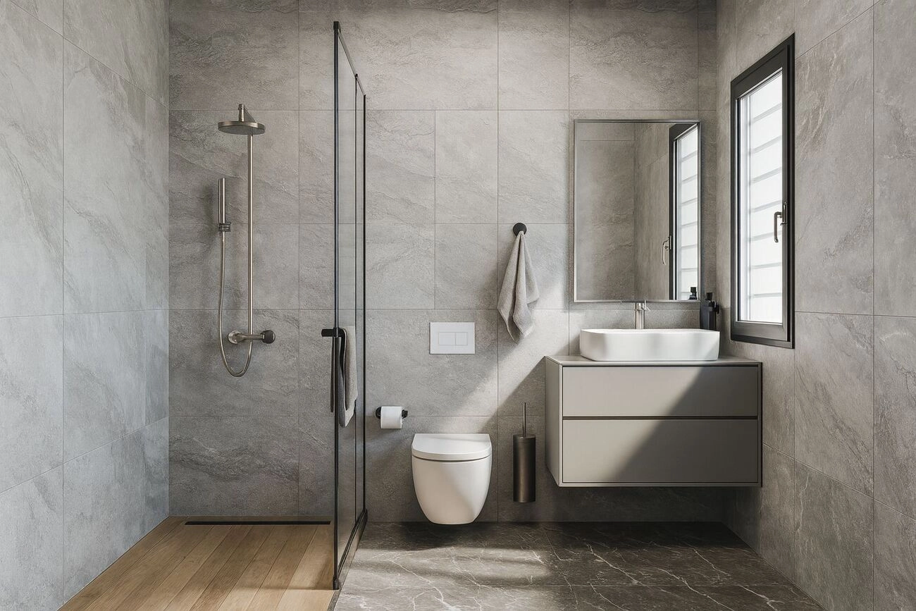 Łazienka: Nowoczesna łazienka z WC o powierzchni 4,25 m2.