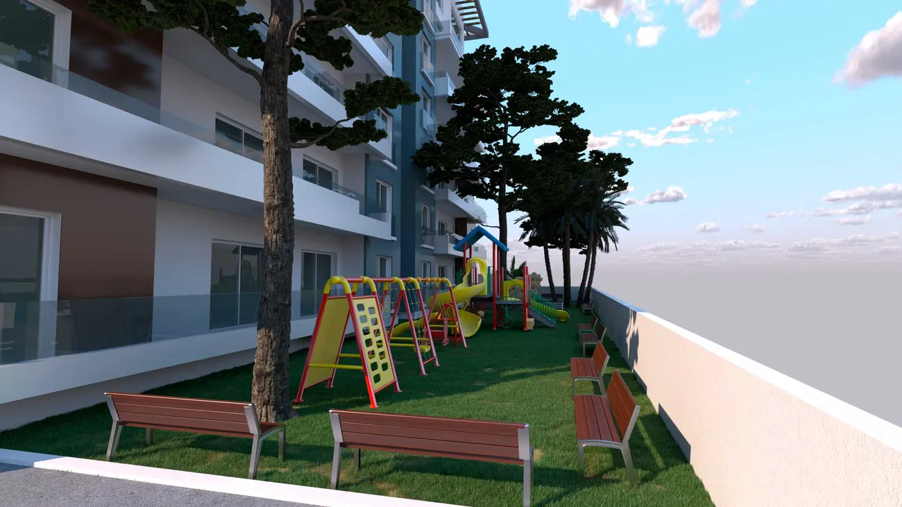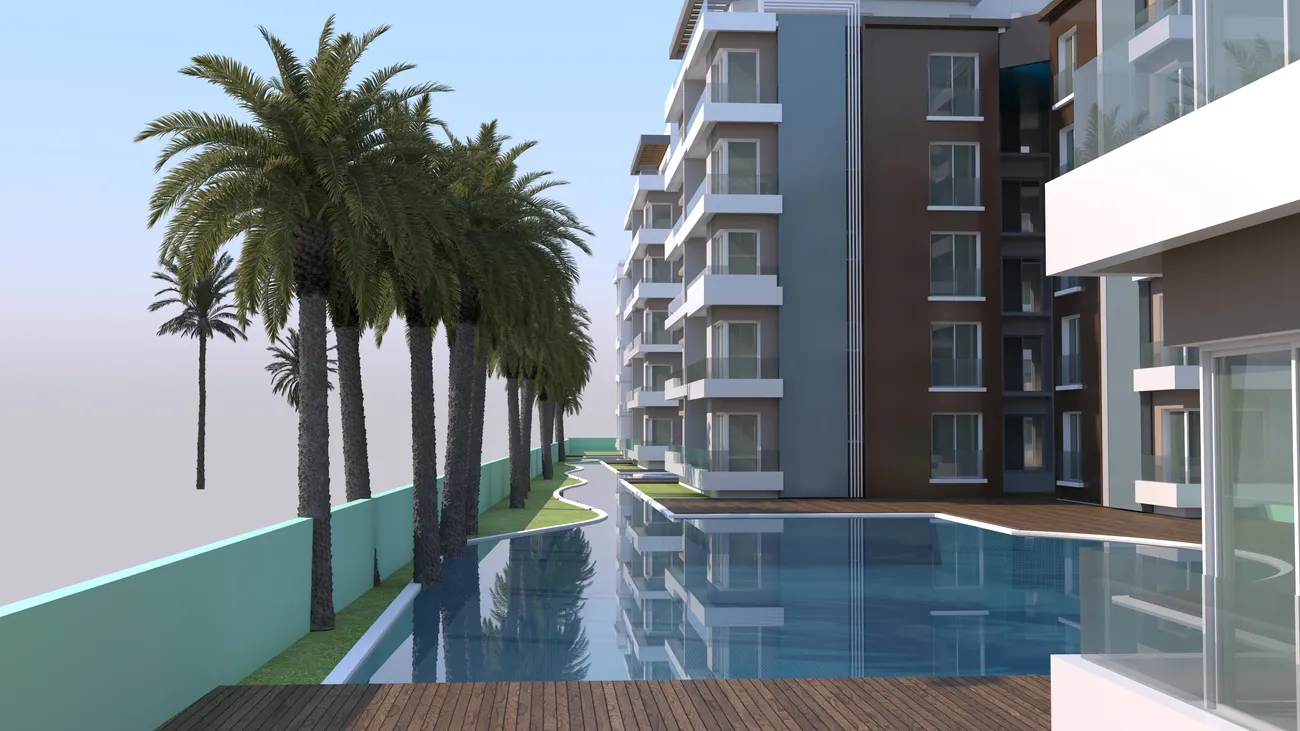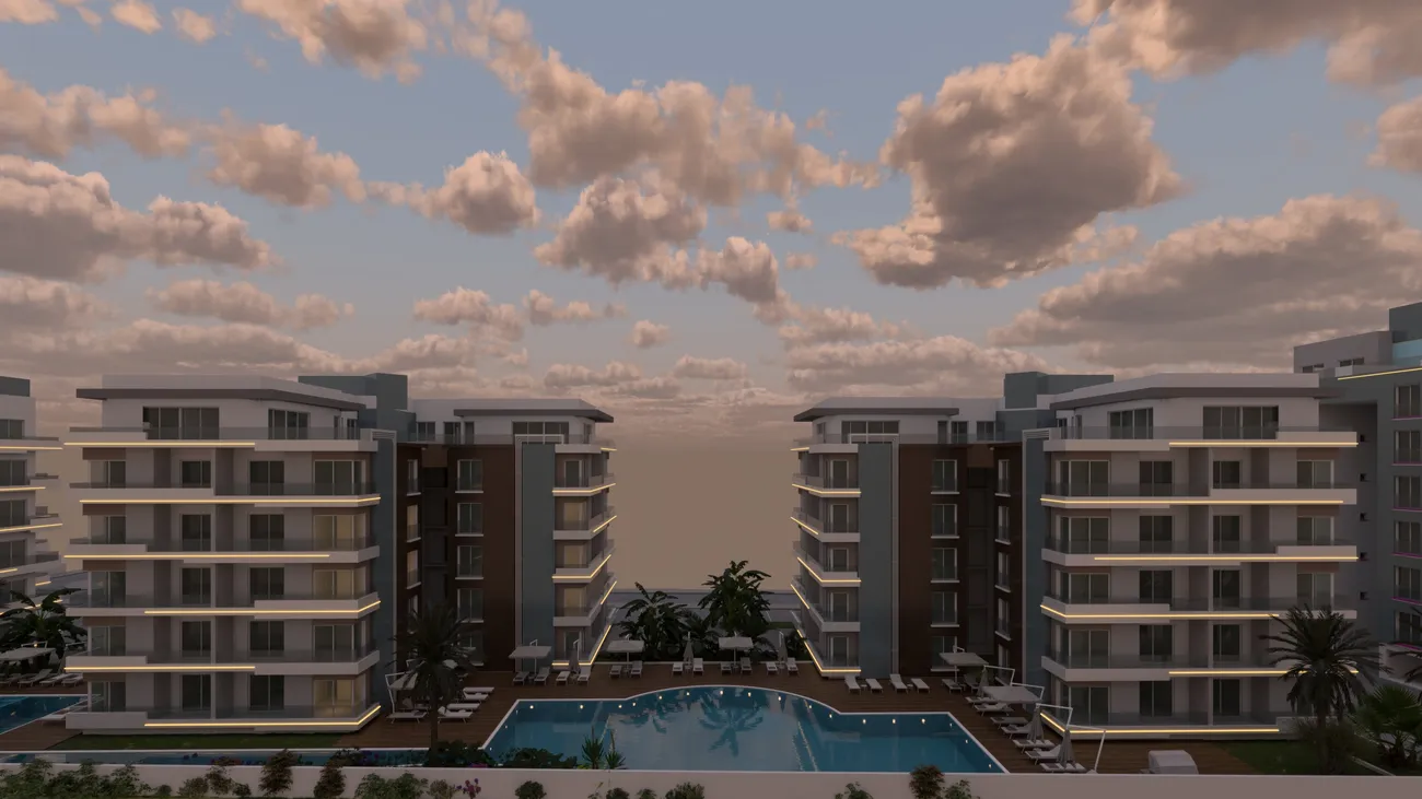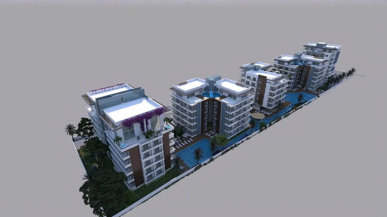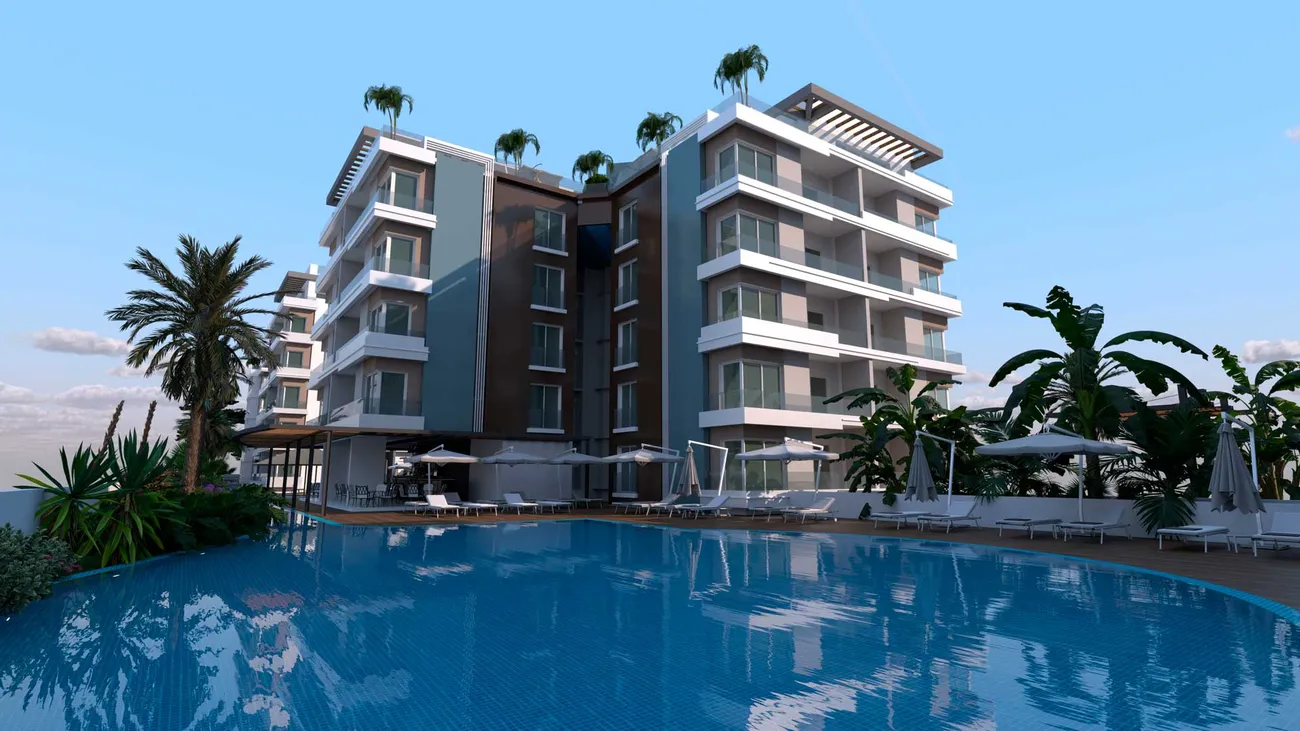 Blue Residence is a luxurious residential complex located in the vibrant tourist center of İskele, Northern Cyprus. This exceptional development offers refined living with contemporary architecture and extensive amenities, making it an ideal choice for both holidaymakers and discerning investors. The complex showcases striking modernist architecture, with elegant design elements that lend character and sophistication throughout. Surrounded by lush tropical gardens featuring exquisite landscaping and decorative lighting, residents are greeted by a warm and relaxing atmosphere that enhances daily living.