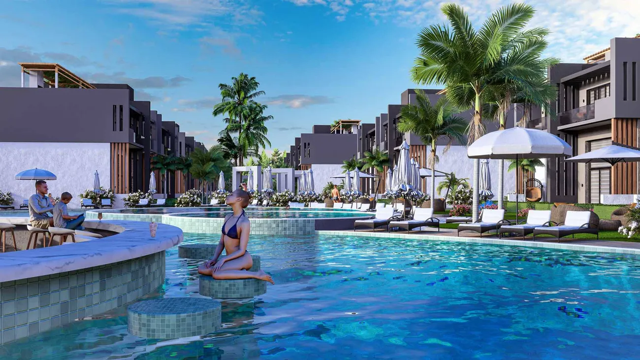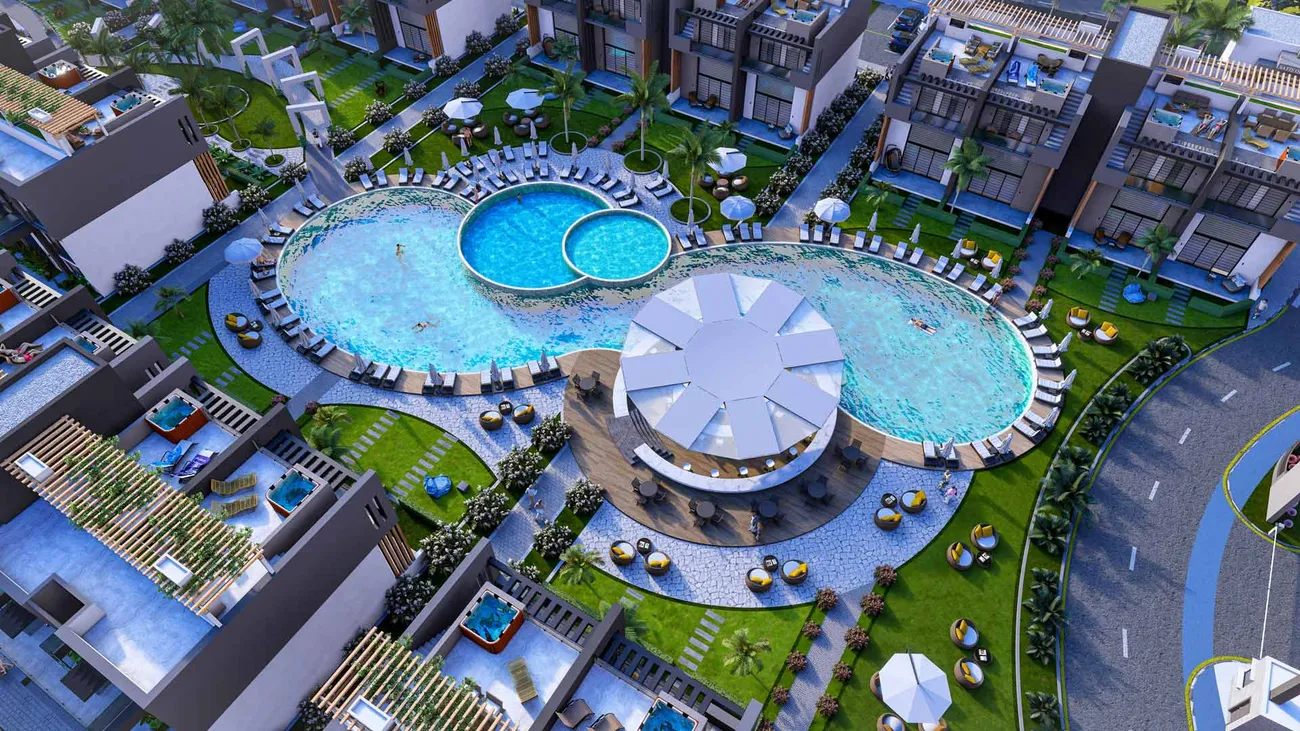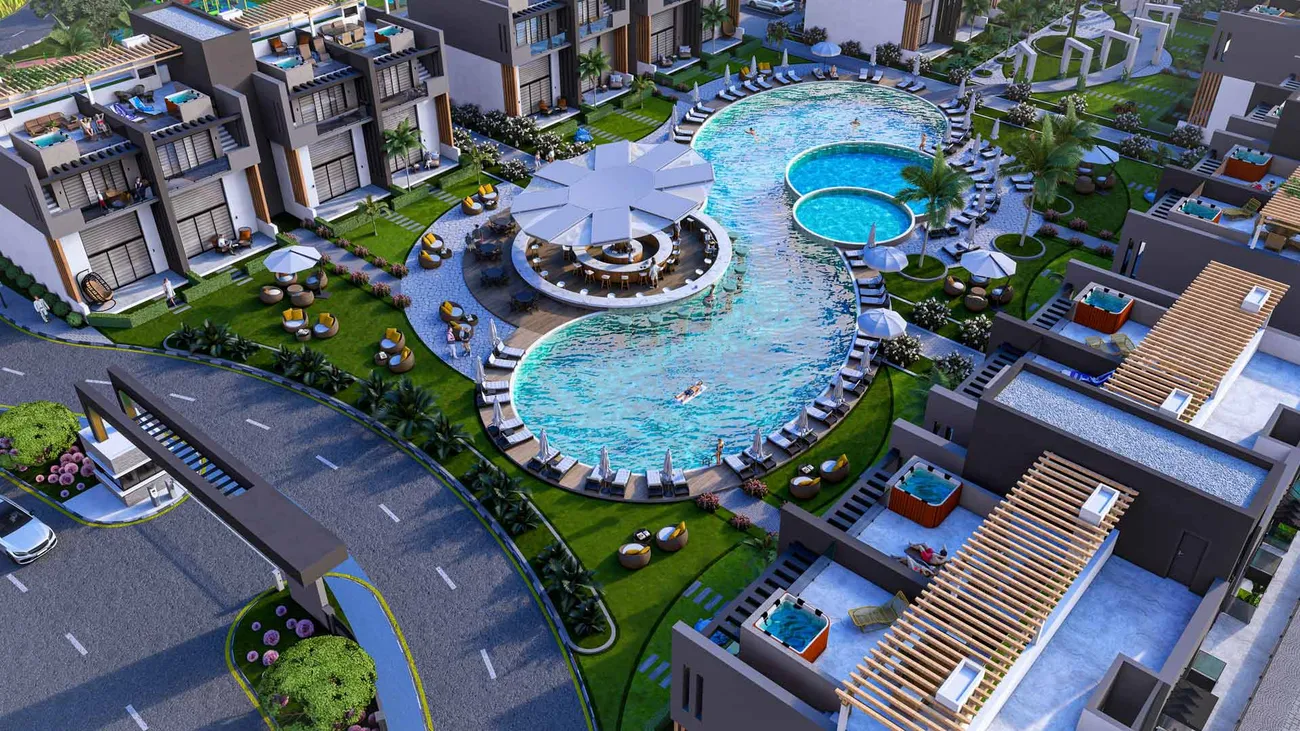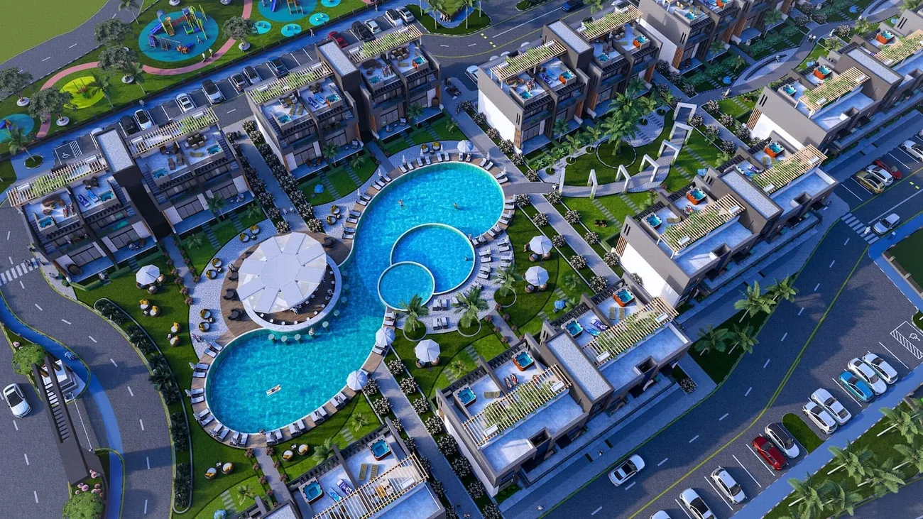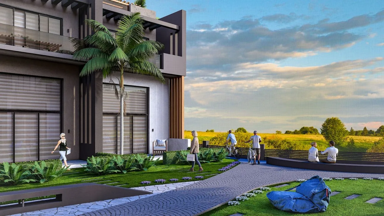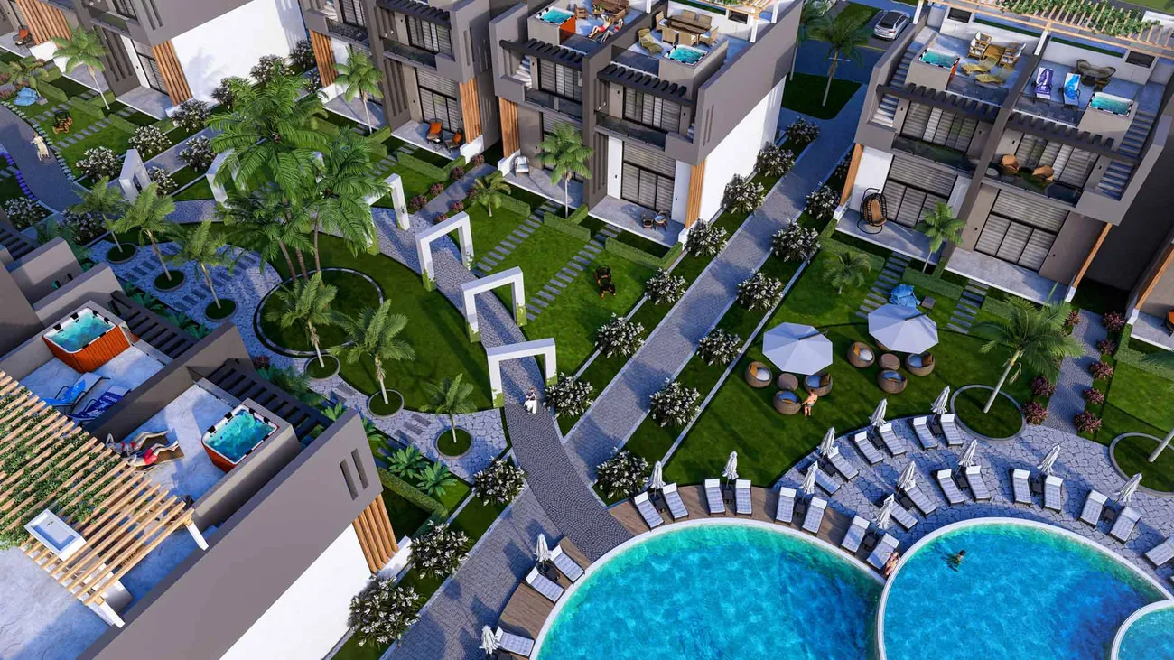 Sky Diora is a residential complex that masterfully combines refined comfort with contemporary design, situated in the picturesque Karpaz region of Northern Cyprus. Set within an expansive 18,732 square meter property in one of the island’s most pristine and beautiful areas, this development offers an ideal sanctuary for those seeking tranquility and seclusion while appreciating natural beauty alongside modern amenities. The complex comprises 10 blocks featuring 80 thoughtfully designed apartments in 1+1 and 2+1 layouts, each executed with a strong emphasis on style and quality to create comfortable and inviting living spaces.