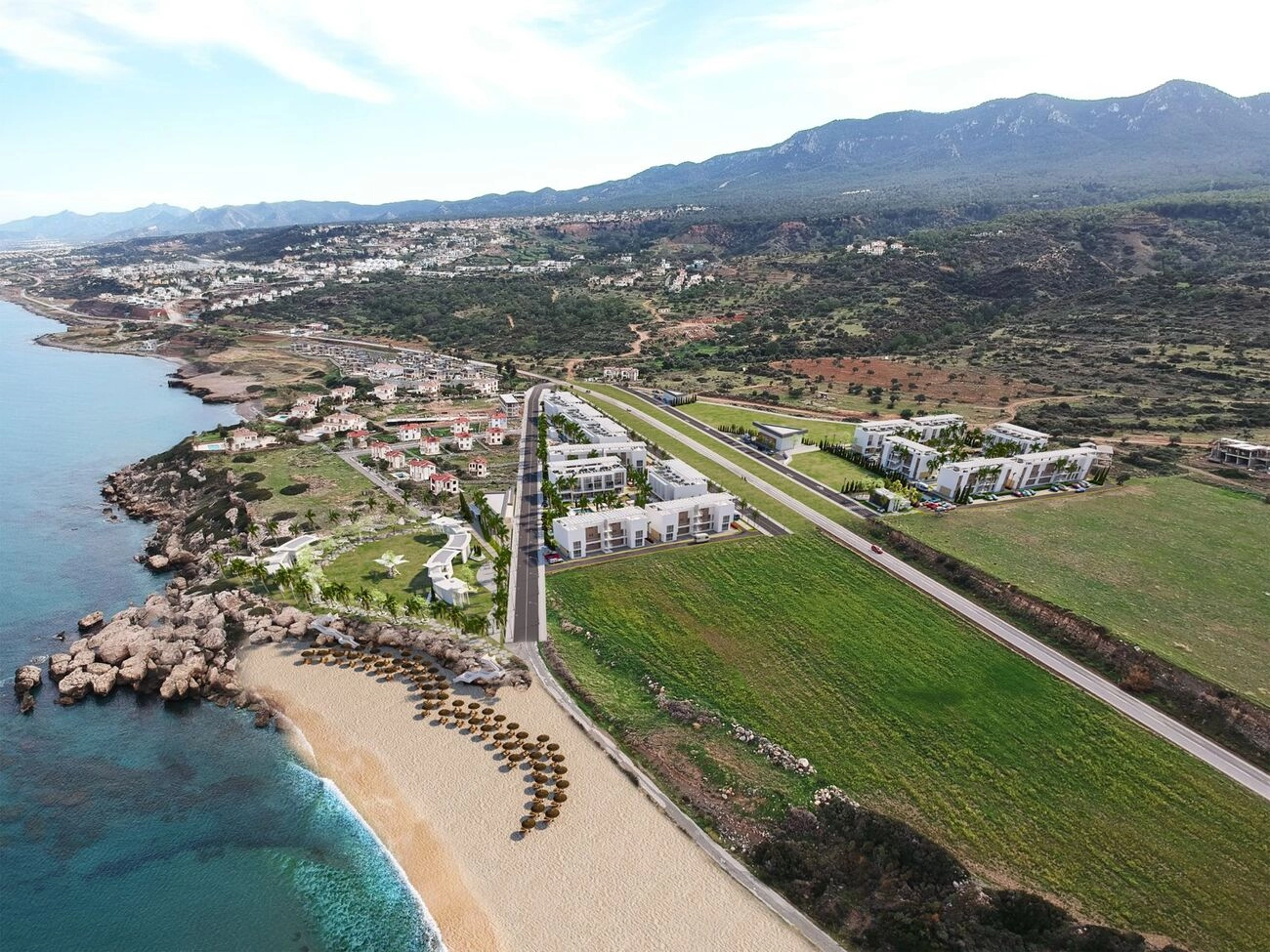 Esentepe is a scenic coastal region that perfectly combines rich history, natural beauty, and modern leisure. The area is known for its protected turtle beaches, where the rare Caretta caretta nests, as well as landmarks like Kantara Castle offering panoramic views of the coastline. Surrounded by olive groves, mountains, and the Mediterranean Sea, Esentepe provides a peaceful atmosphere alongside premium amenities, including a renowned 18-hole golf course. With its proximity to Kyrenia, the region stands out as one of the most desirable destinations for both living and holidays.
