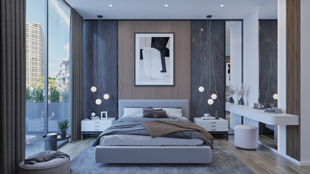 Kusursuz İç-Dış Mekan Akışı: Daire boyunca tavandan tabana cam kapılar, Akdeniz çevresiyle çarpıcı bir görsel bağlantı oluşturmaktadır.