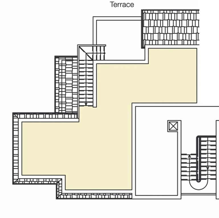 Üst Kat (Çatıdaki Mabet): Özel bir merdiven, güneşlenmek ya da panoramik manzaralı yıldızlarla aydınlatılmış akşam yemekleri için özel bir açık hava salonu olarak hizmet veren geniş bir çatı katı "Teras "a çıkmaktadır.