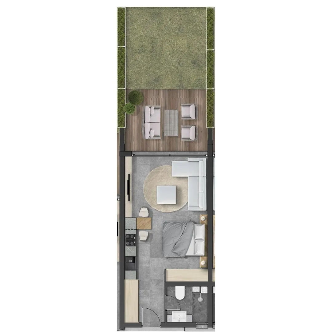 • Modern Avantajlar: Akıllı yerleşim planı her metrekarenin kullanılmasını sağlarken, geniş panoramik pencereler stüdyo dairelerde nadiren bulunan havadar ve ferah bir his yaratır.