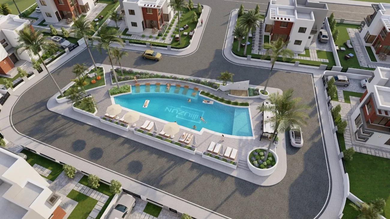 Kapsamlı Zodiac City kompleksinin bir parçası olan Aries Villas 2, sakinlerine resort tarzı olağanüstü bir altyapı sunmaktadır. Buna iki yüzme havuzu, iyi donanımlı bir spor salonu, market, barbekü alanı, rahat bir dinlenme alanı ve havuz kenarında bir kafe ve bara erişim dahildir. Otopark ve İskele'ye, Mağusa merkezine ve plaja ücretsiz servis gibi ek kolaylıklarla bu villalar cazip bir yatırım fırsatını temsil etmektedir. Hem huzurlu ve konforlu bir ev arayan ailelere hem de istikrarlı talebin olduğu bir bölgede güçlü kiralama potansiyeline sahip kaliteli gayrimenkul arayan yatırımcılara hitap etmektedir.